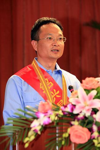 圖為丁衛松同志在勞模表彰大會上發言