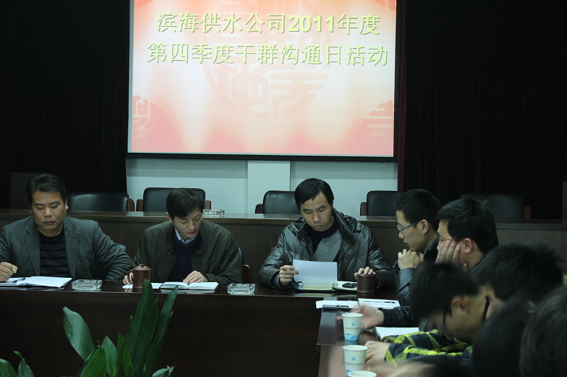 參加本次“干群溝通日”活動的對象是部分2010年聘用職工及今年新進職工。座談會上,2010屆職工代表以“過來人”的經歷向新進職工介紹了一年來的工作感受,新職工逐一發言暢談了進公司以來的所感所想,并與公司領導進行了面對面的交流,會議在輕松、熱烈的氣氛中進行。最后,公司董事長吳紹文向新職工提出希望,希望新職工盡快融入工作角色,扎根于濱海供水公司這片沃土,立足崗位成才。