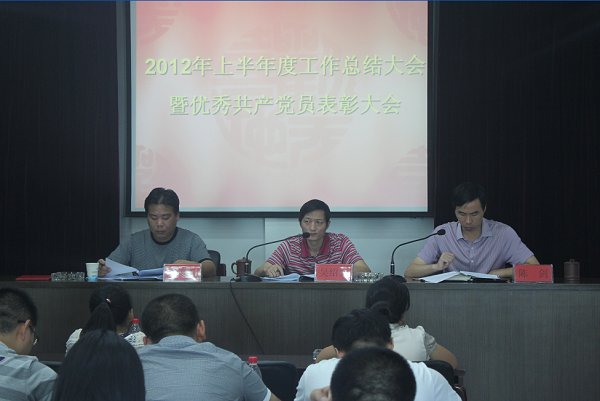 719上午,濱海水司召開2012年上半年度工作總結暨優秀共產黨員表彰大會,班組長以上管理干部及部分職工代表共41人參加會議。會議由公司董事長吳紹文主持,總經理陳劍作半年度工作報告,全面回顧總結上半年工作情況,部署下半年度各項工作任務。