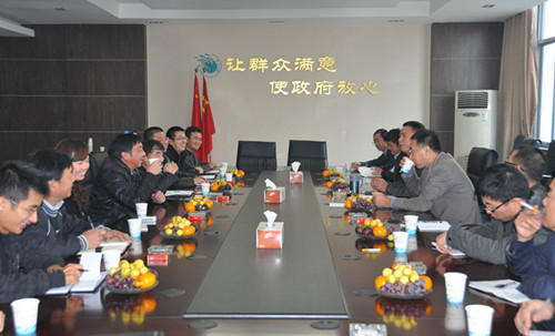 月20日下午,杭州臨安自來水有限公司一行 9人在姜言孝總經理的帶領下來我公司交流創建浙江省城市供水現代化營業所等方面的工作,公司李總、任副總及有關部門人員陪同。