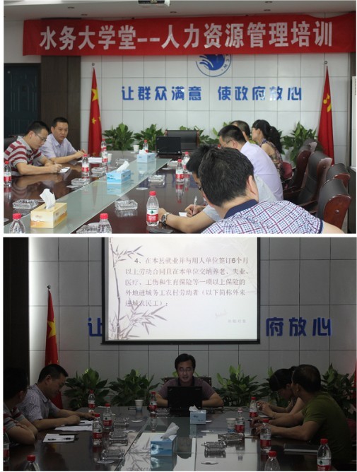 7月19日,縣水務(wù)集團第七期水務(wù)大學(xué)堂在濱海水司辦公樓三樓會議室順利舉行,縣人力資源與社會保障管理局賀東權(quán)主任和呂芳科長應(yīng)邀授課。集團系統(tǒng)各個辦公室主任、分管副主任及人事管理干部共13人參加了培訓(xùn)。