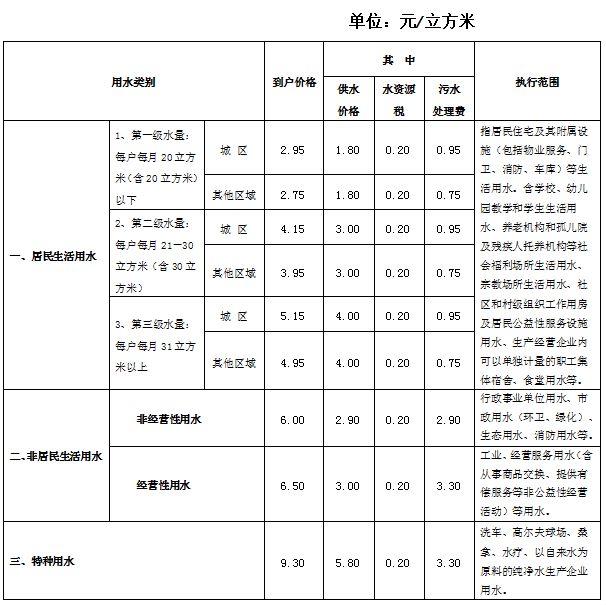 柯橋區自來水水價收費標準